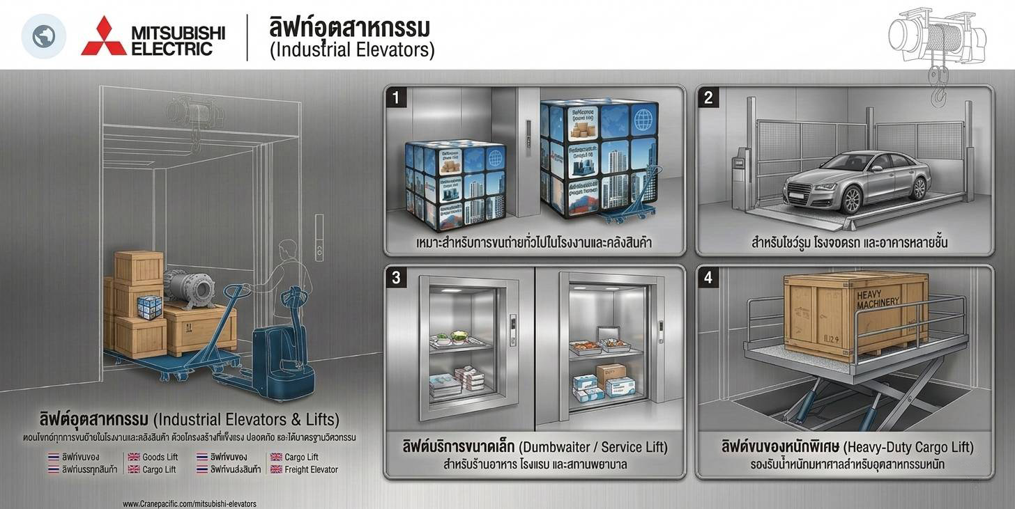 บริการออกแบบ ติดตั้ง และจำหน่าย ลิฟท์ขนของ ลิฟท์บ้าน และรอกสลิงไฟฟ้า MITSUBISHI แบบครบวงจร